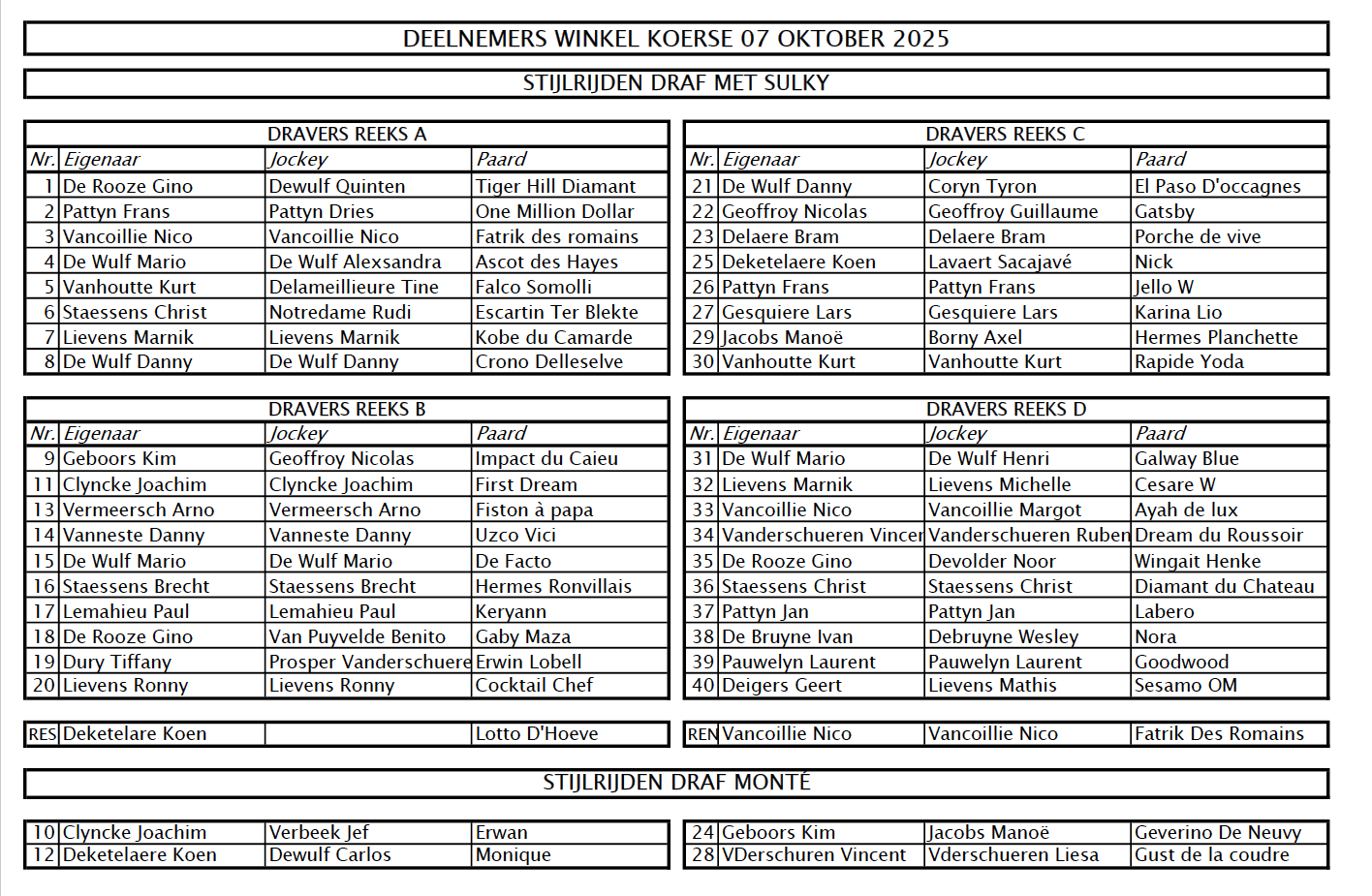Bekijk de uitslagen van het stijlrijden van Winkel Koerse 7 Oktober 2025.